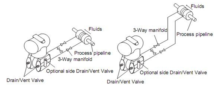 - Đối với các bộ truyền áp suất vi sai đo đường ống thẳng đứng, hãy bù chênh lệch độ cao bằng cách sử dụng “điều chỉnh áp suất bằng không” thông qua màn hình hiển thị hoặc bộ giao tiếp HART .